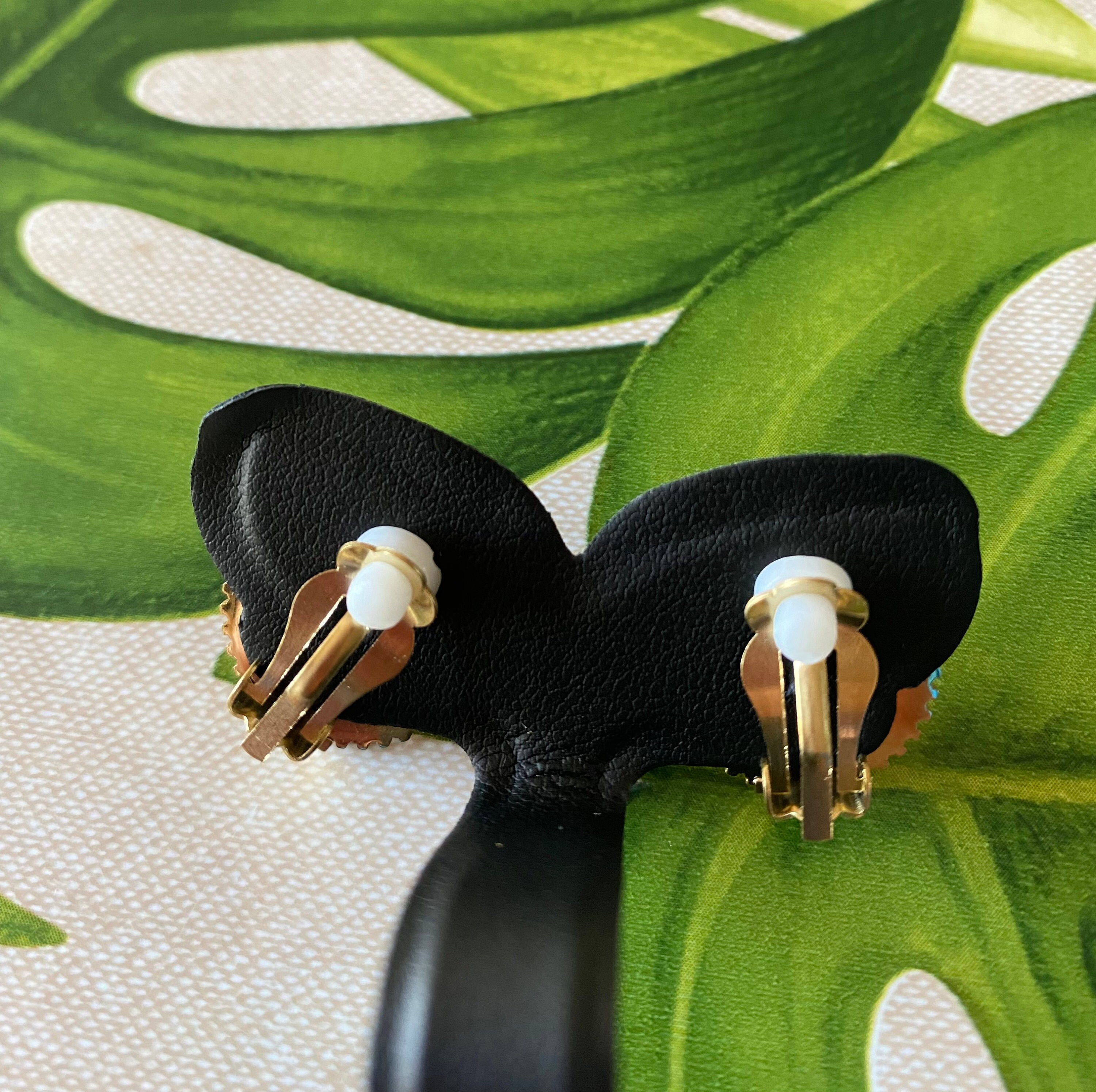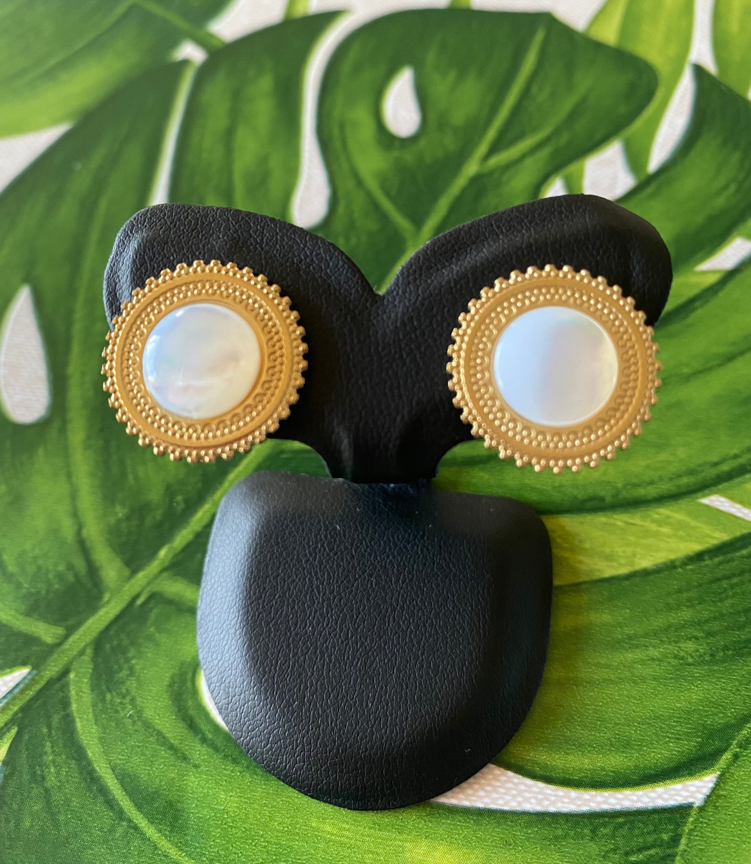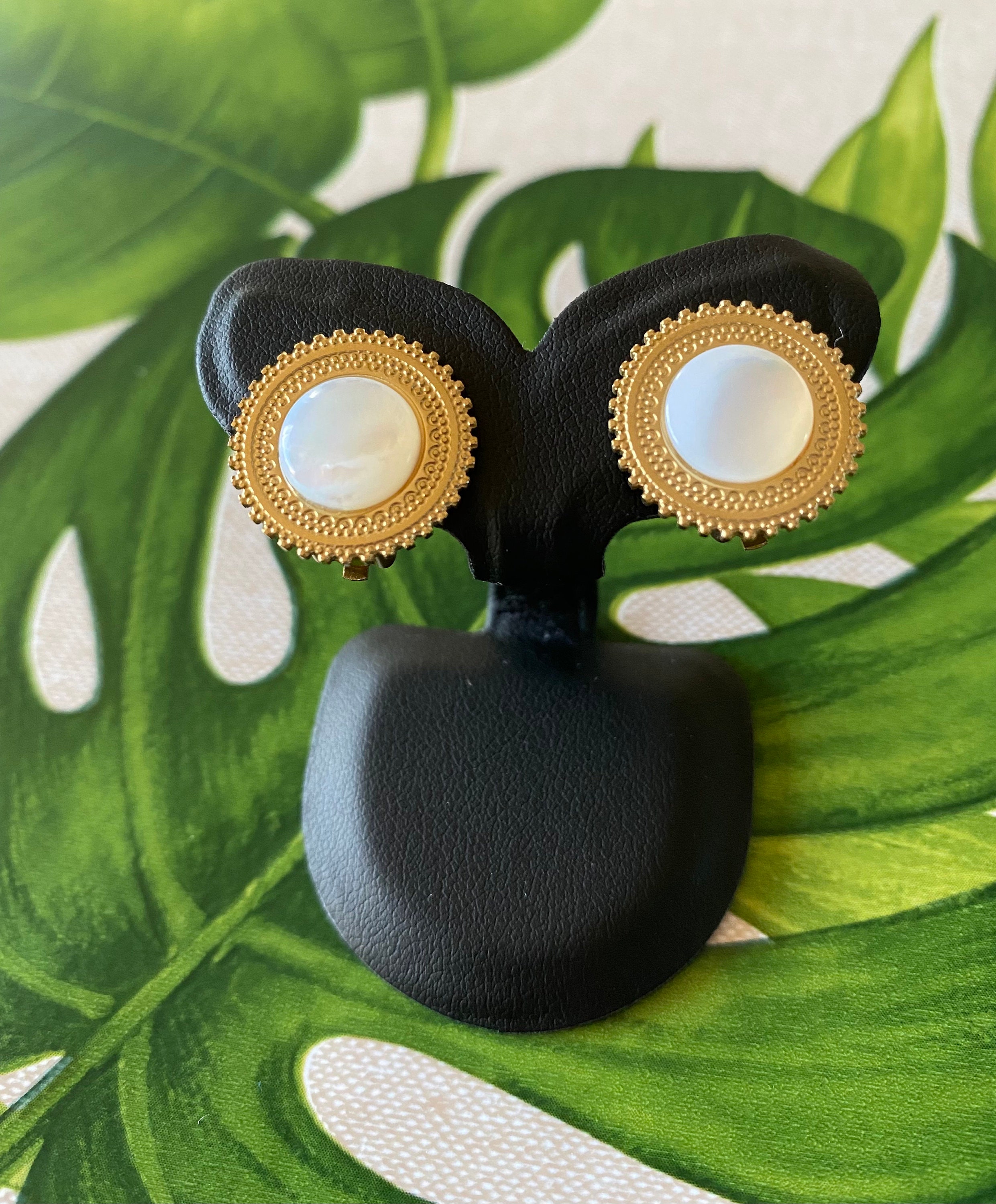 Round gold clip-on earrings Iridescent white mother-of-pearl, for unpierced ears of good quality