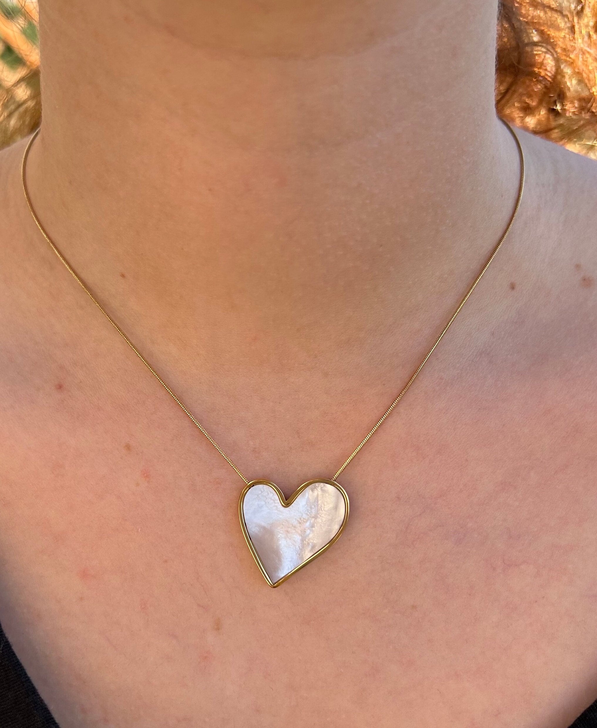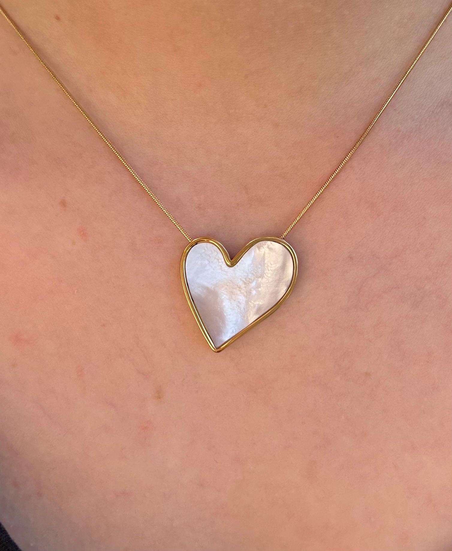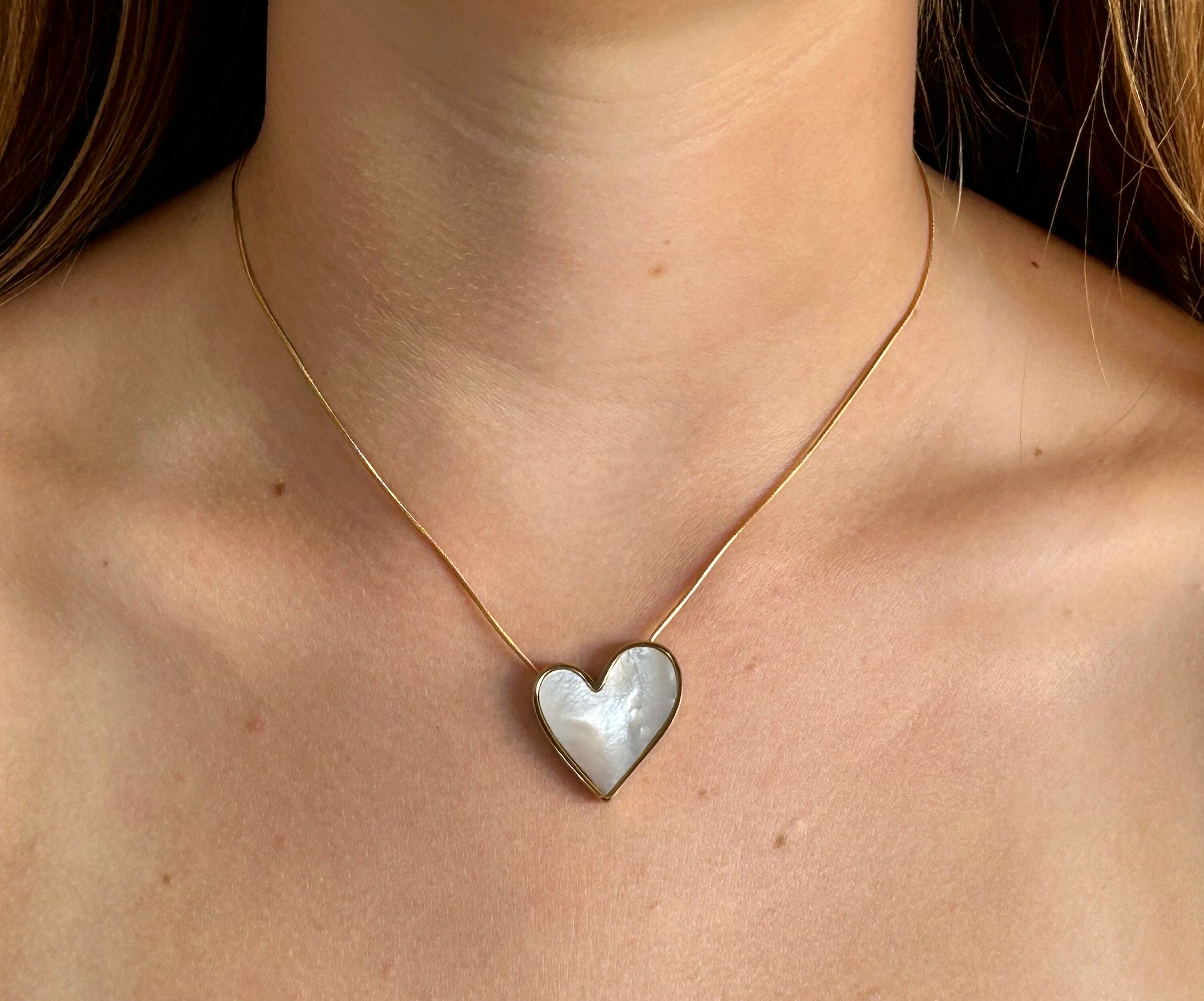 Beautiful gold necklace with a mother-of-pearl heart with iridescent reflections, a symbol of love, this will be a beautiful Christmas gift to offer to your wife, your partner, your sweetheart, your daughter, it is exceptionally discounted with a Black Friday offer. This high-quality, gold-plated necklace is adjustable in length from 42 to 49 cm, it suits all body types (from thin to medium neck), it can be worn over clothing or directly on the skin.
