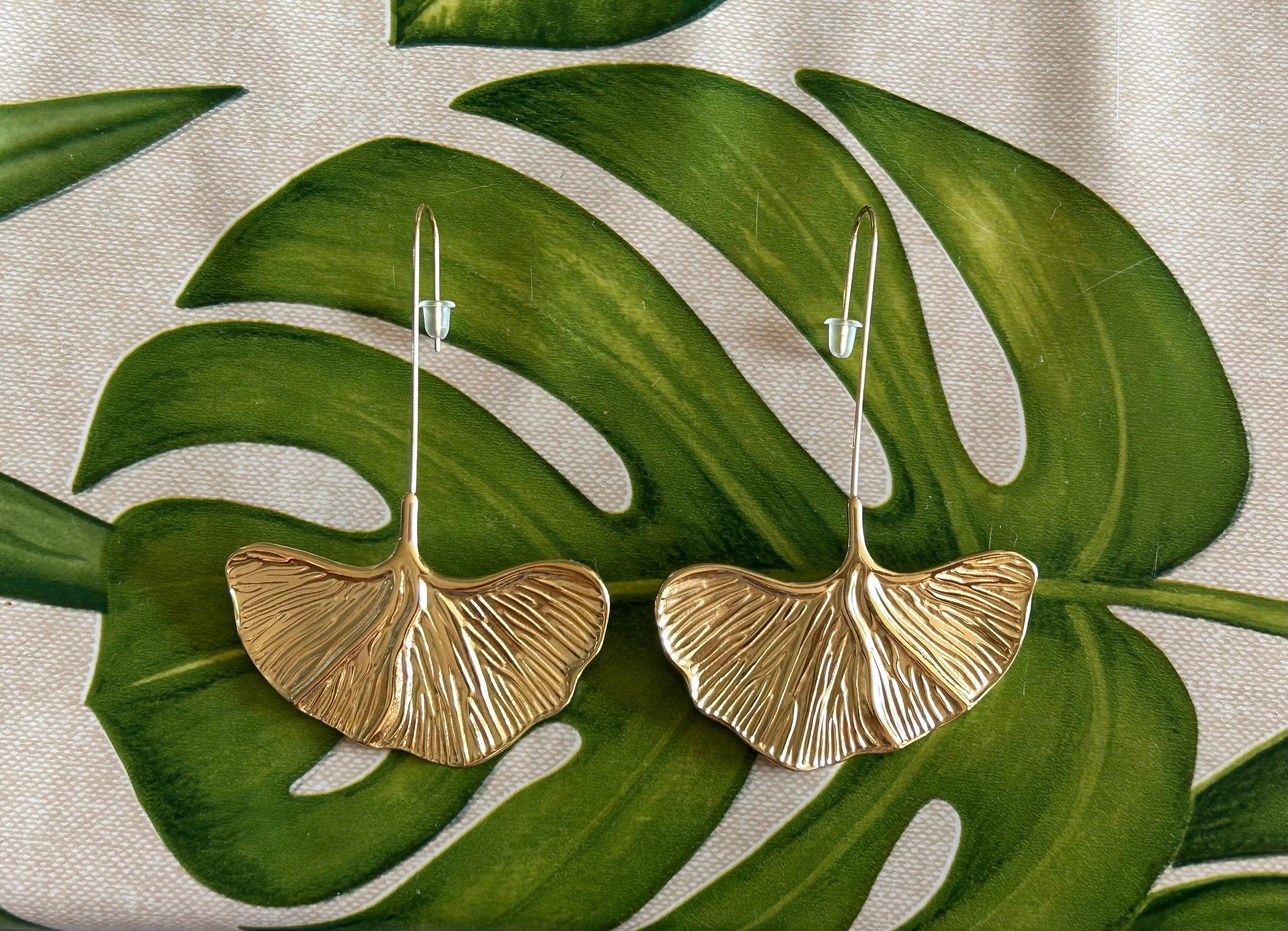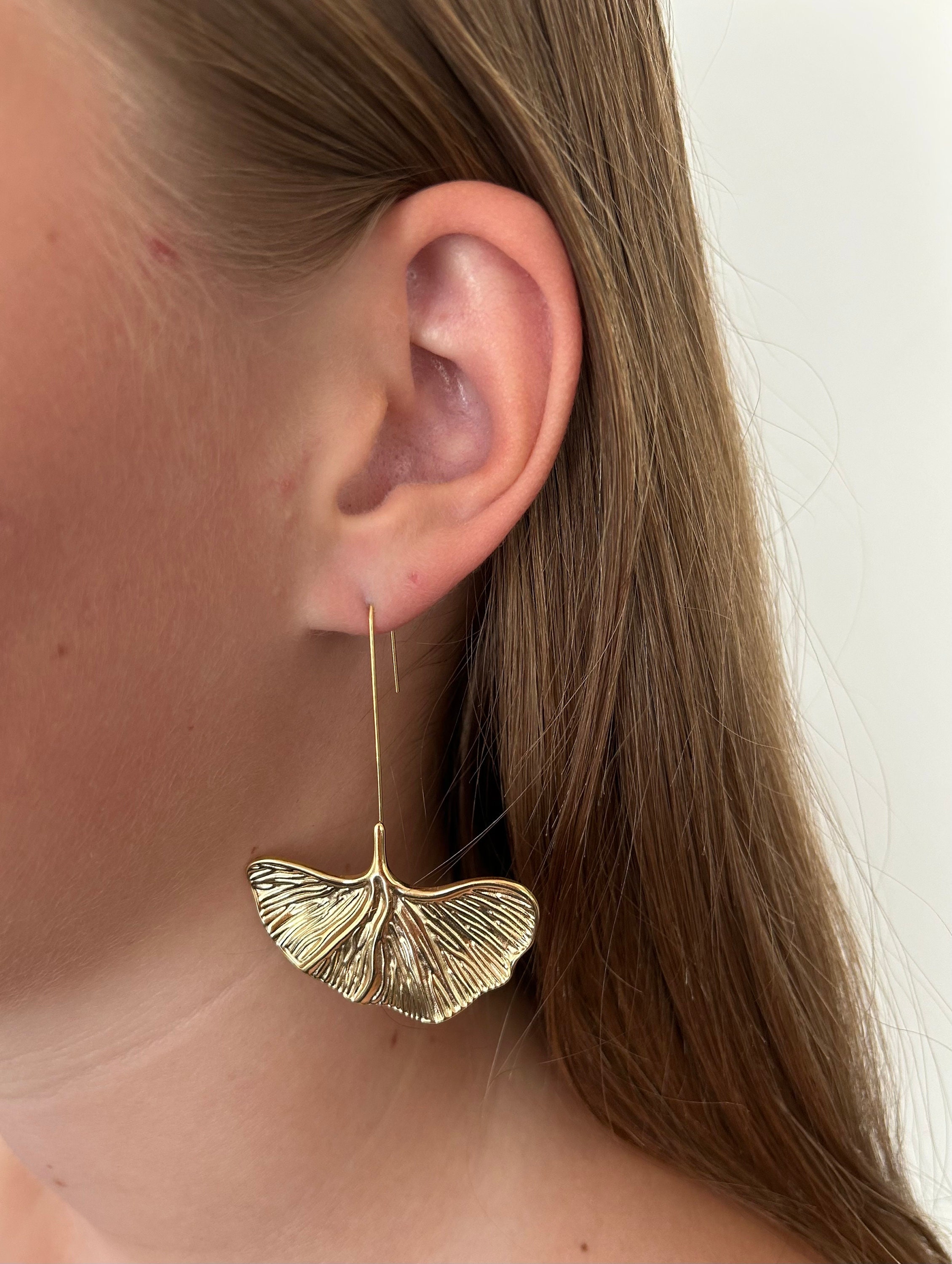 Original and elegant gold-plated ginkgo flower earrings, ideal for complementing a pretty dressy outfit for a wedding or evening event. They also make a lovely birthday gift for a woman. Gift box included.