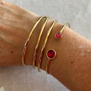 Set of 4 high-quality, round, gold-plated bangle bracelets, available in 4 sizes XS, S, M, L/XL to fit small to large wrists. Solid and durable, they make a lovely gift for a birthday or a treat for yourself.