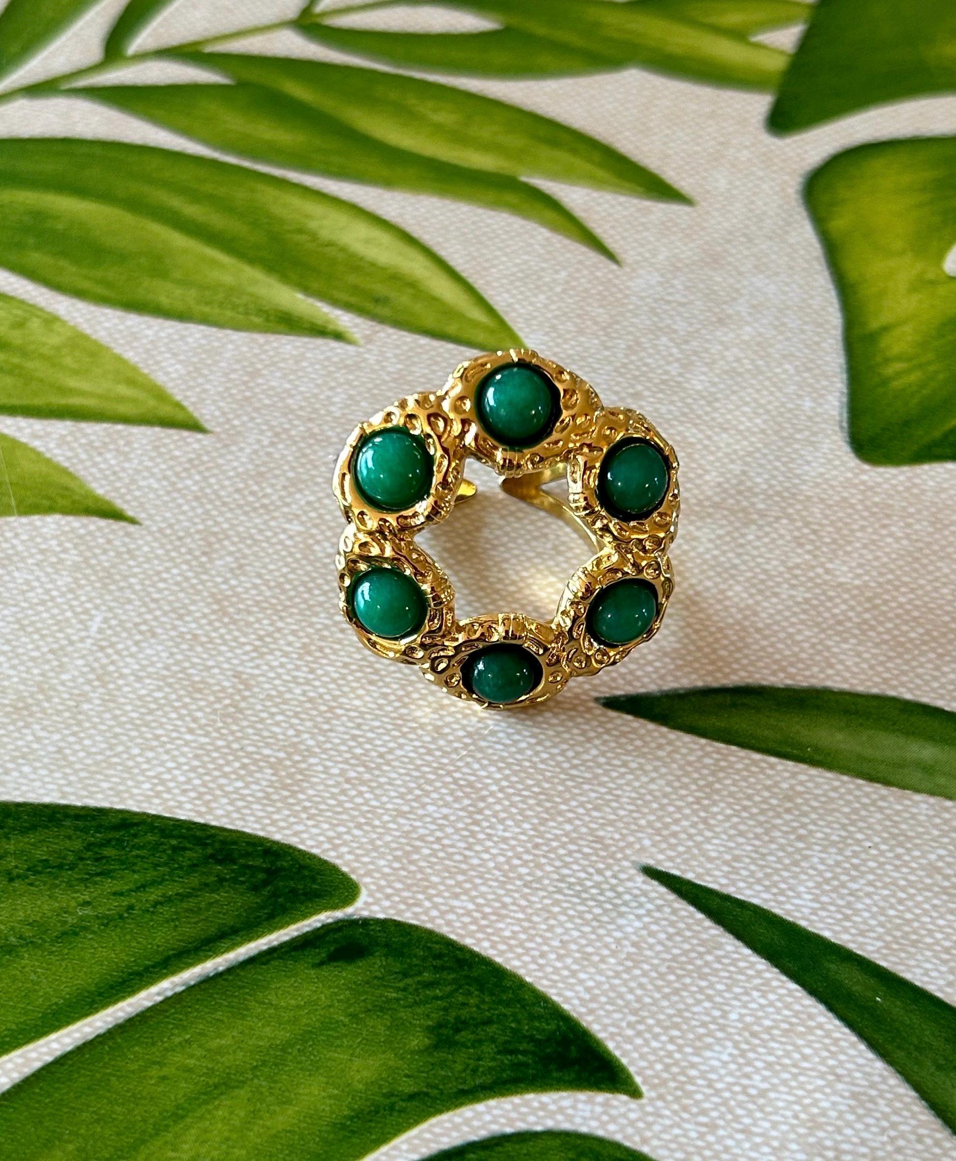 Superb round ring, black or green gold, Art Nouveau style, rare and original, black or green agate cabochons, natural stones