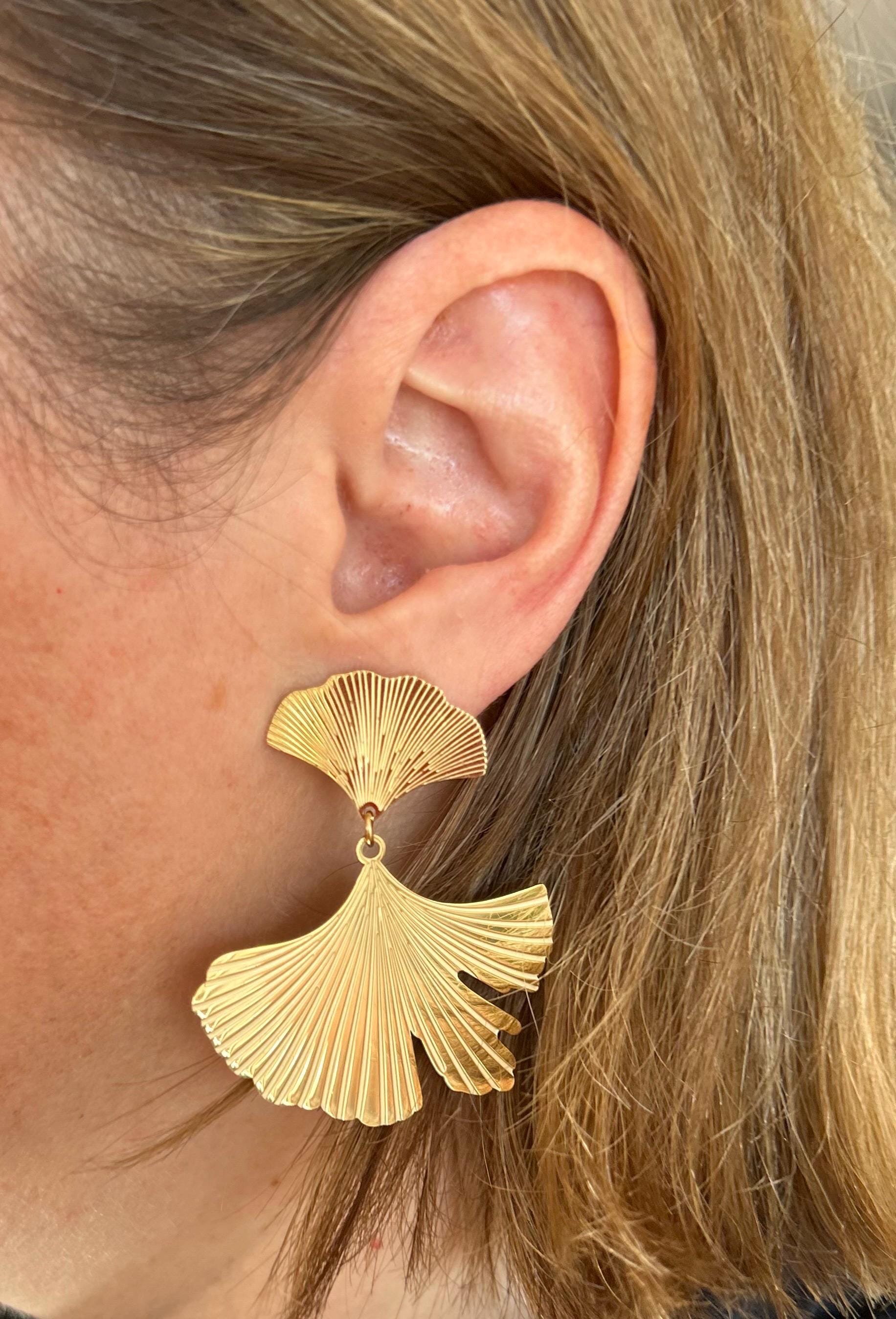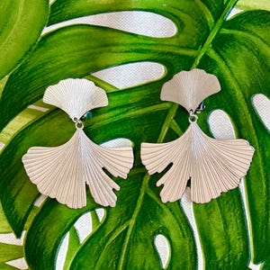 Earrings made from 2 ginkgo biloba leaves, easy to put on, lightweight. Made of stainless steel, anti-allergy and resistant Length: 5 cm, width: 4.5 cm