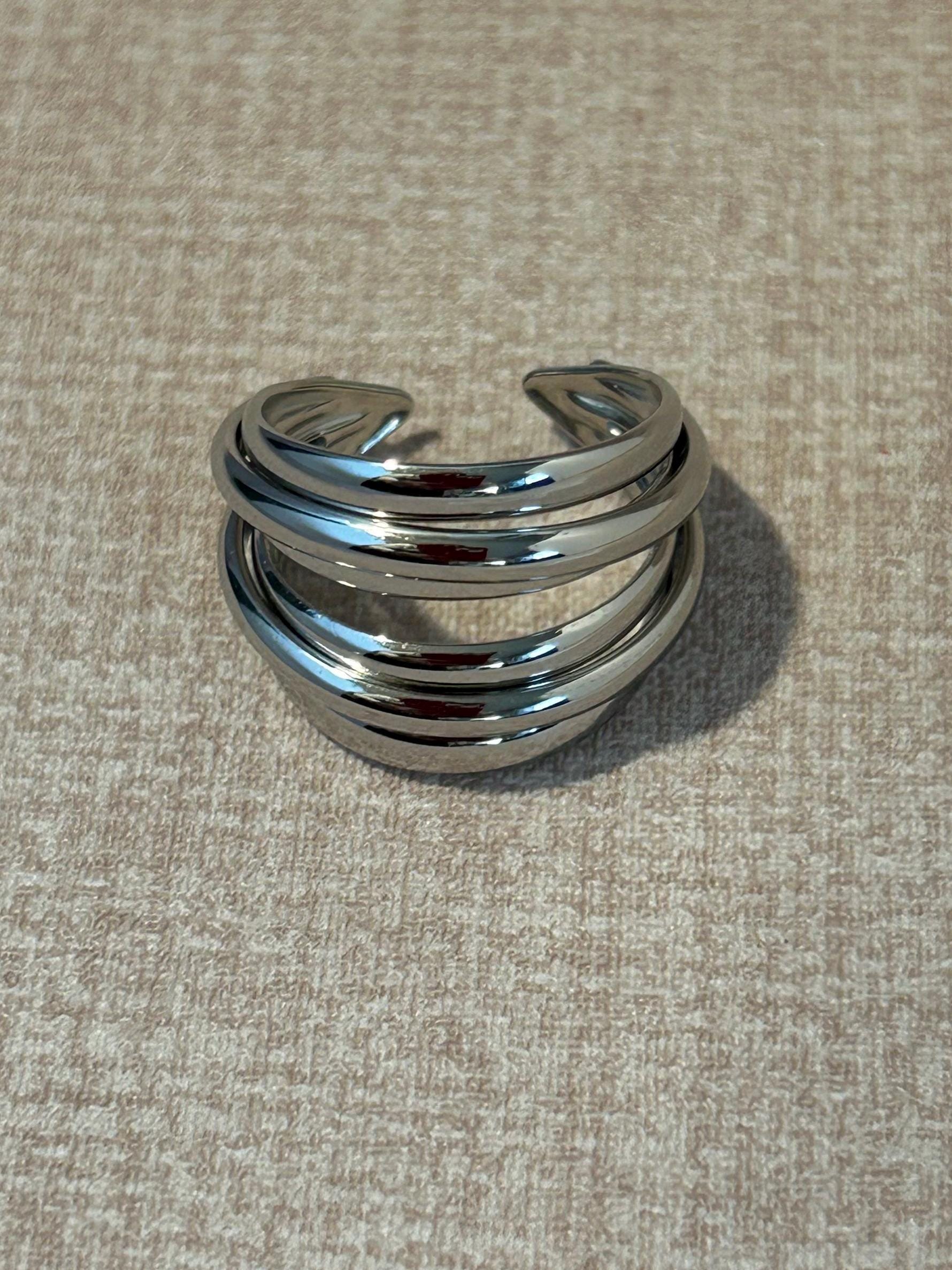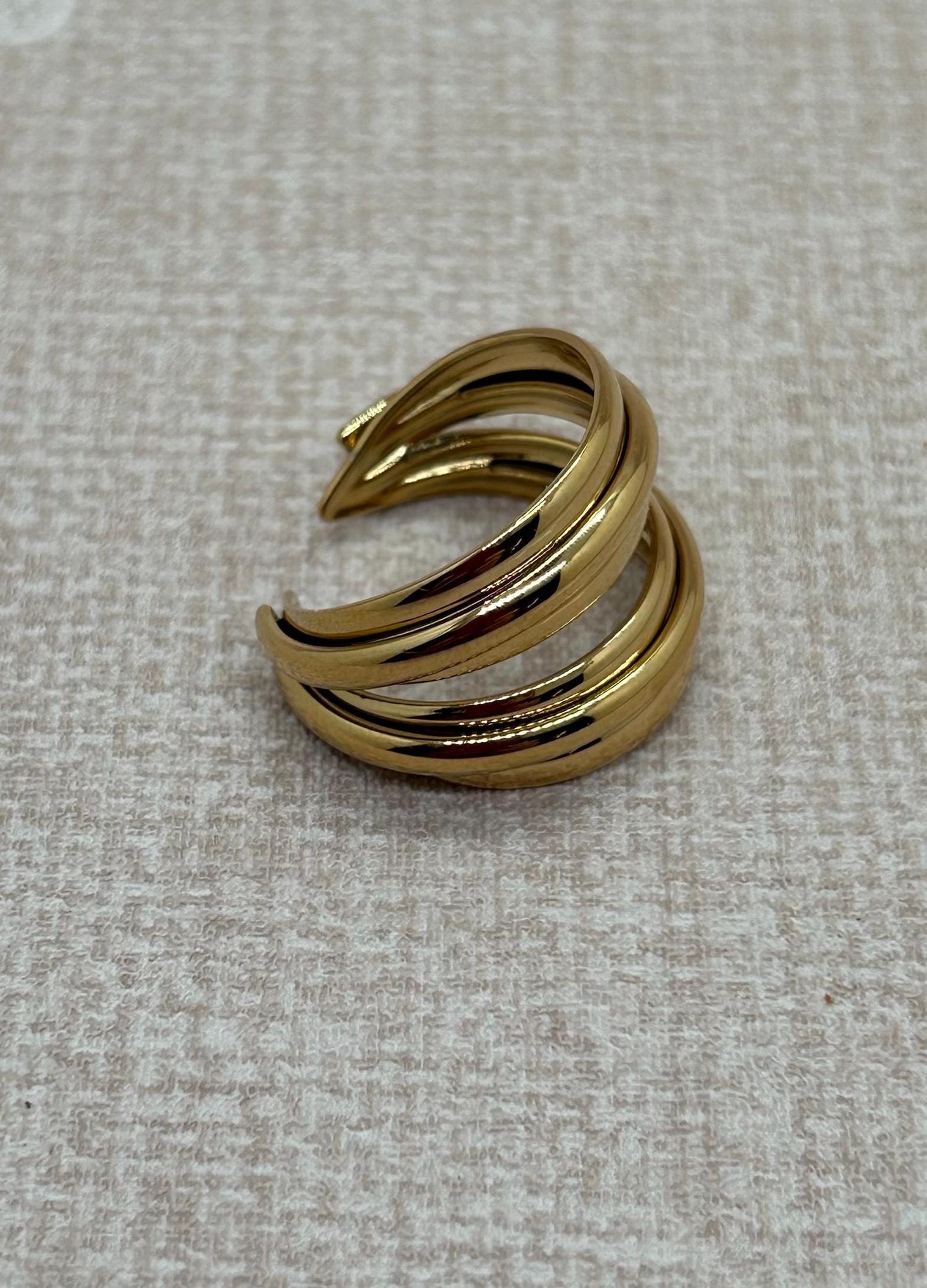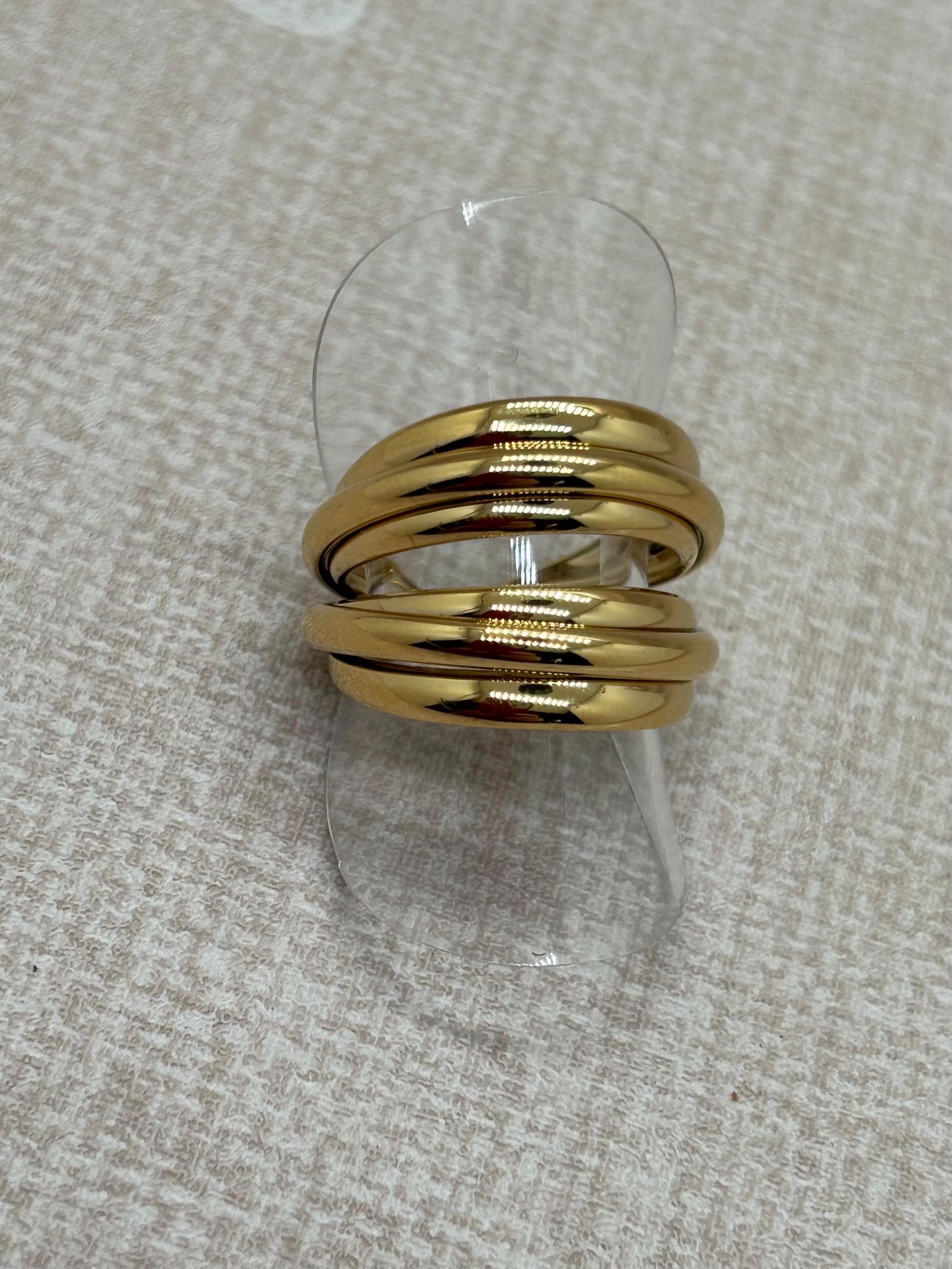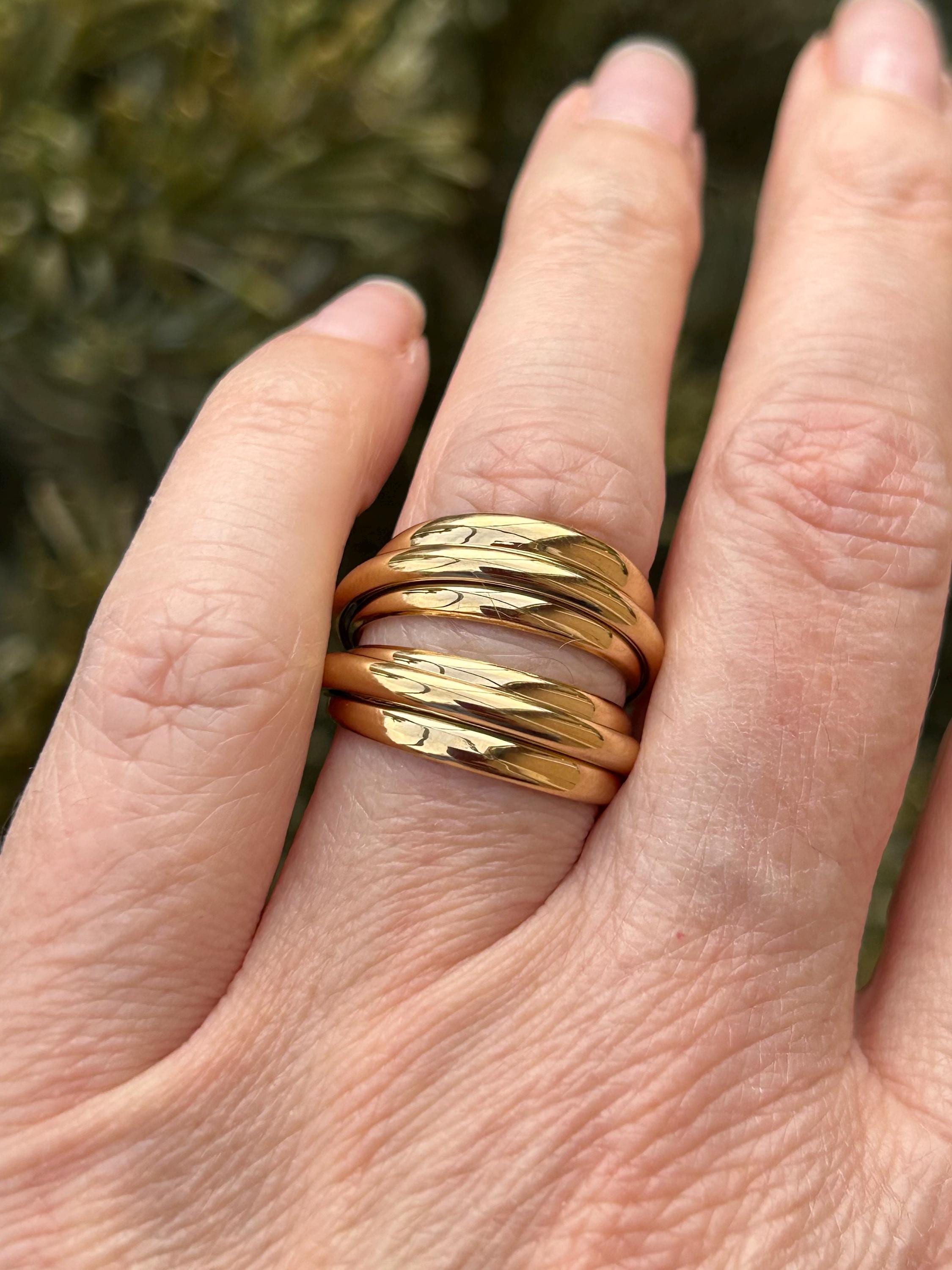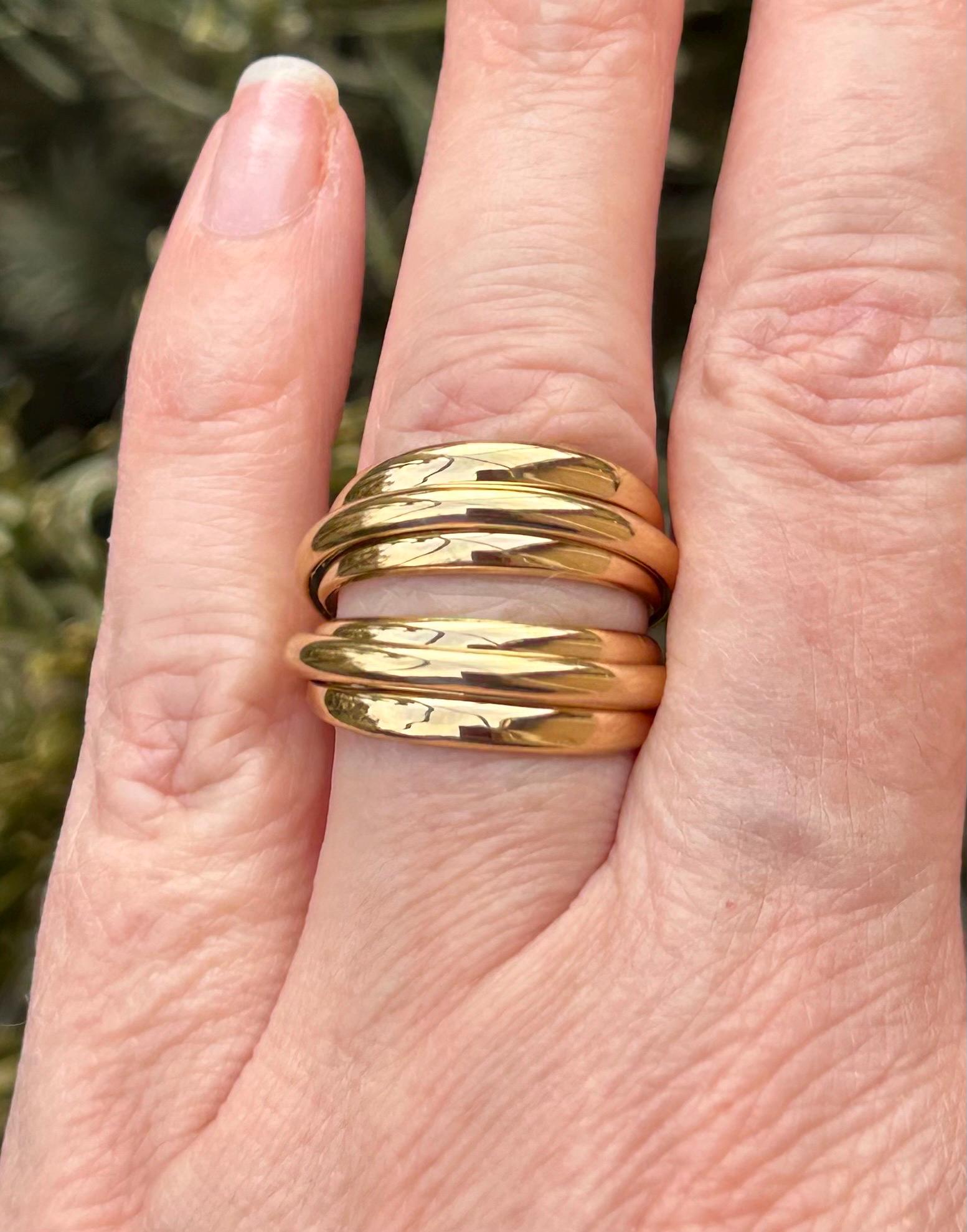 A wide, multi-band gold ring with a domed design; an elegant, adjustable, and high-quality ring that would make a wonderful Christmas gift.
