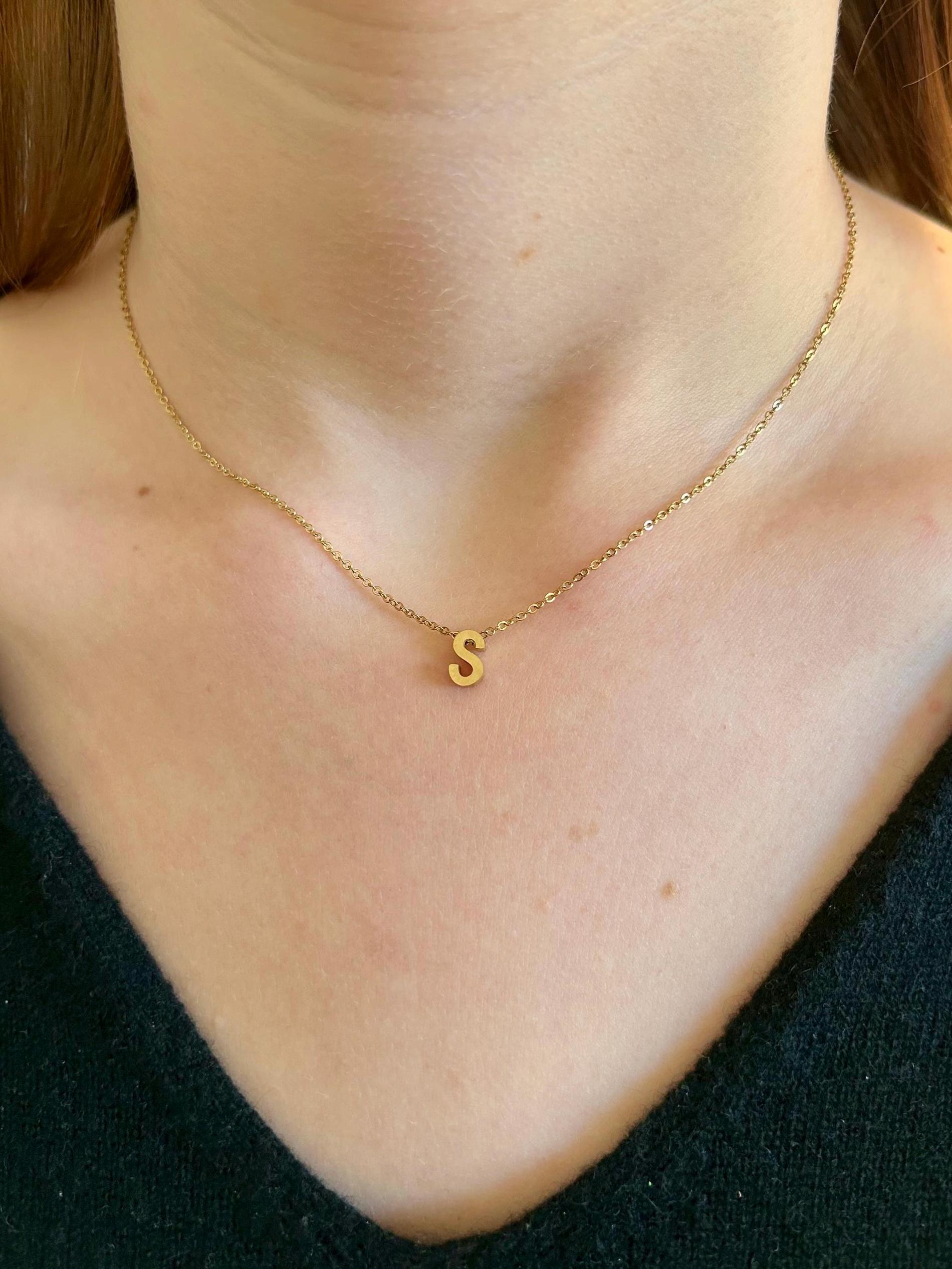 Pretty gold-tone initial S necklace, adjustable, high quality, B C D E M N O S .. T Z, Christmas gift idea for girls, teens, and women, necklace on sale