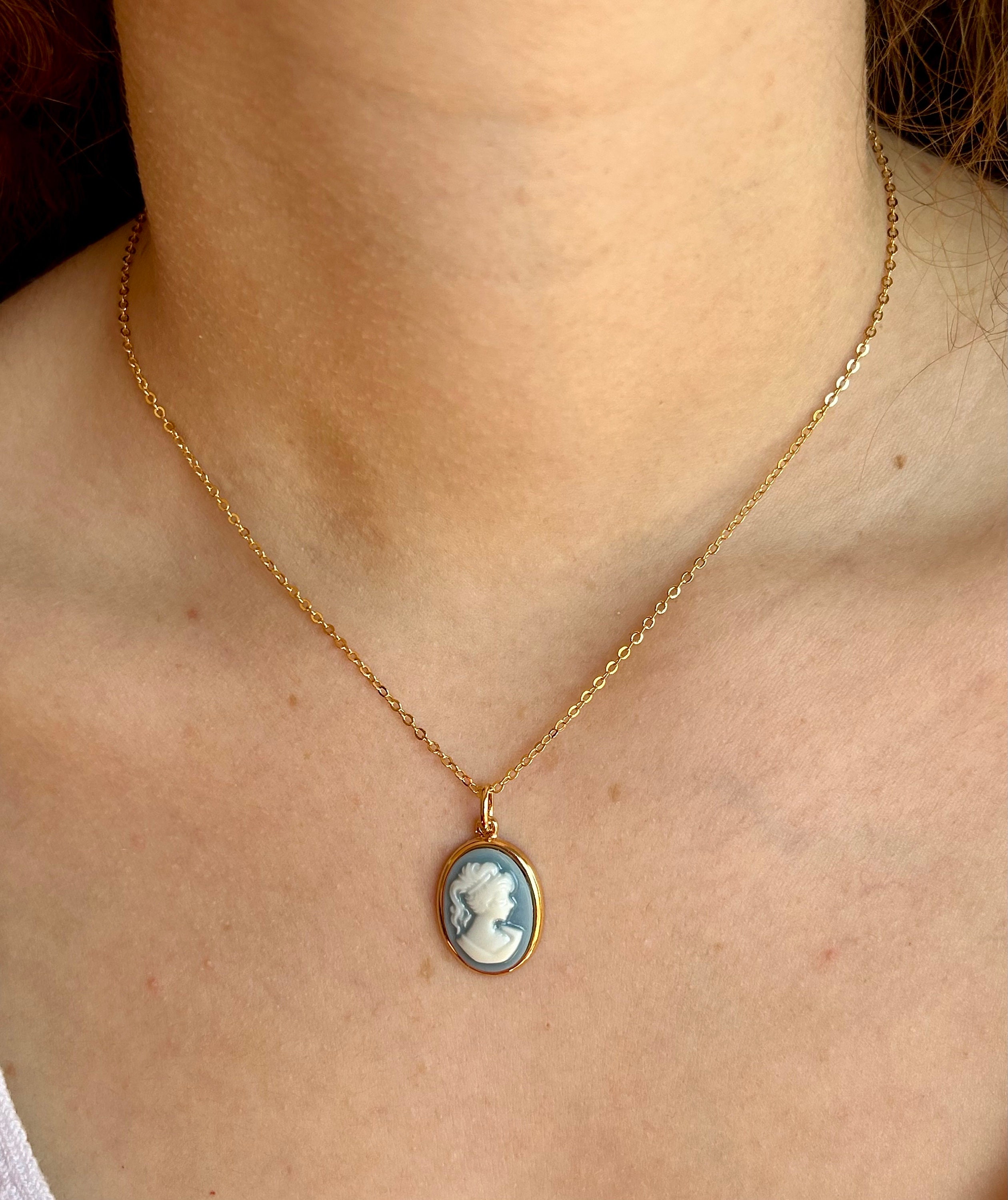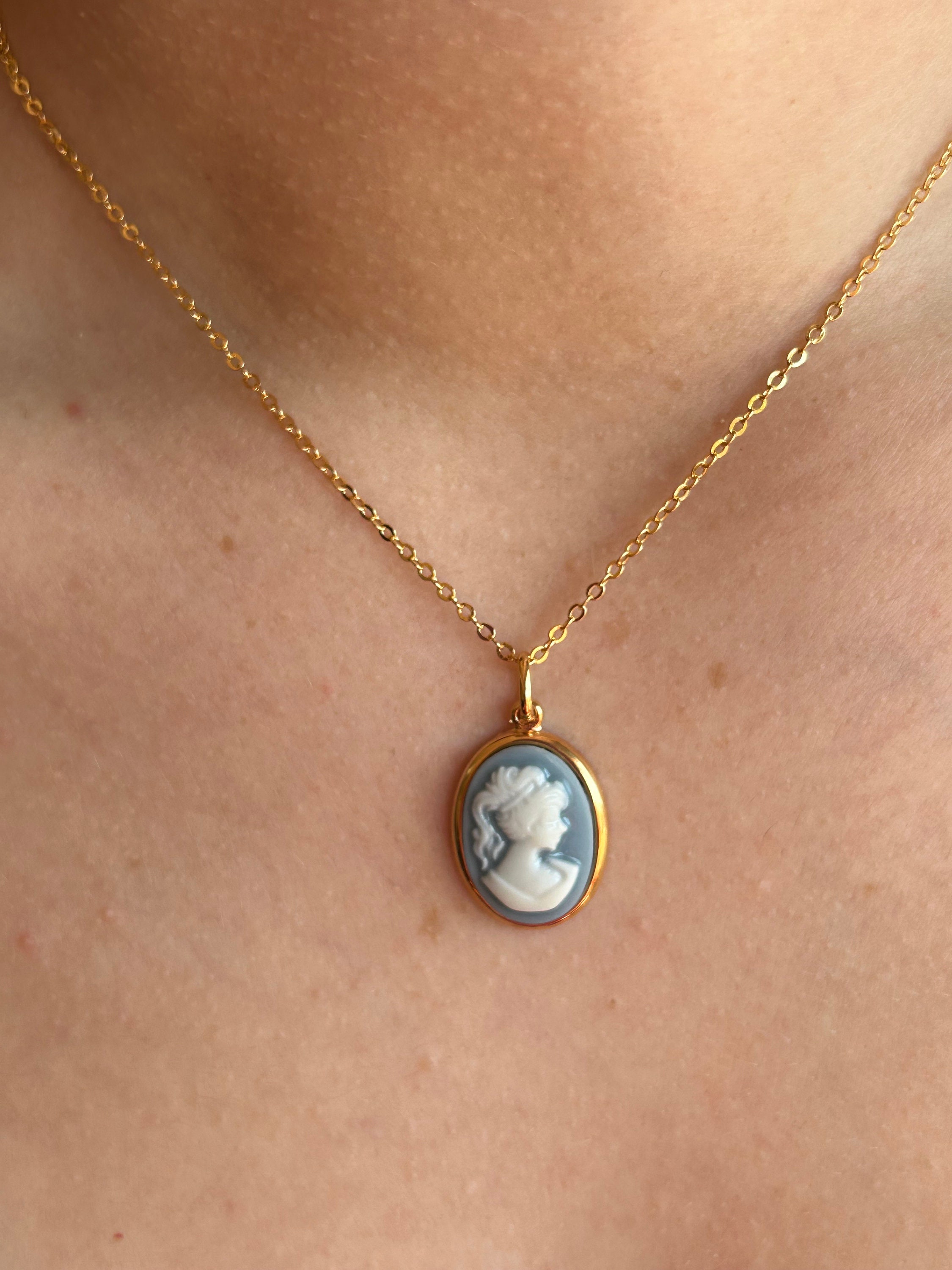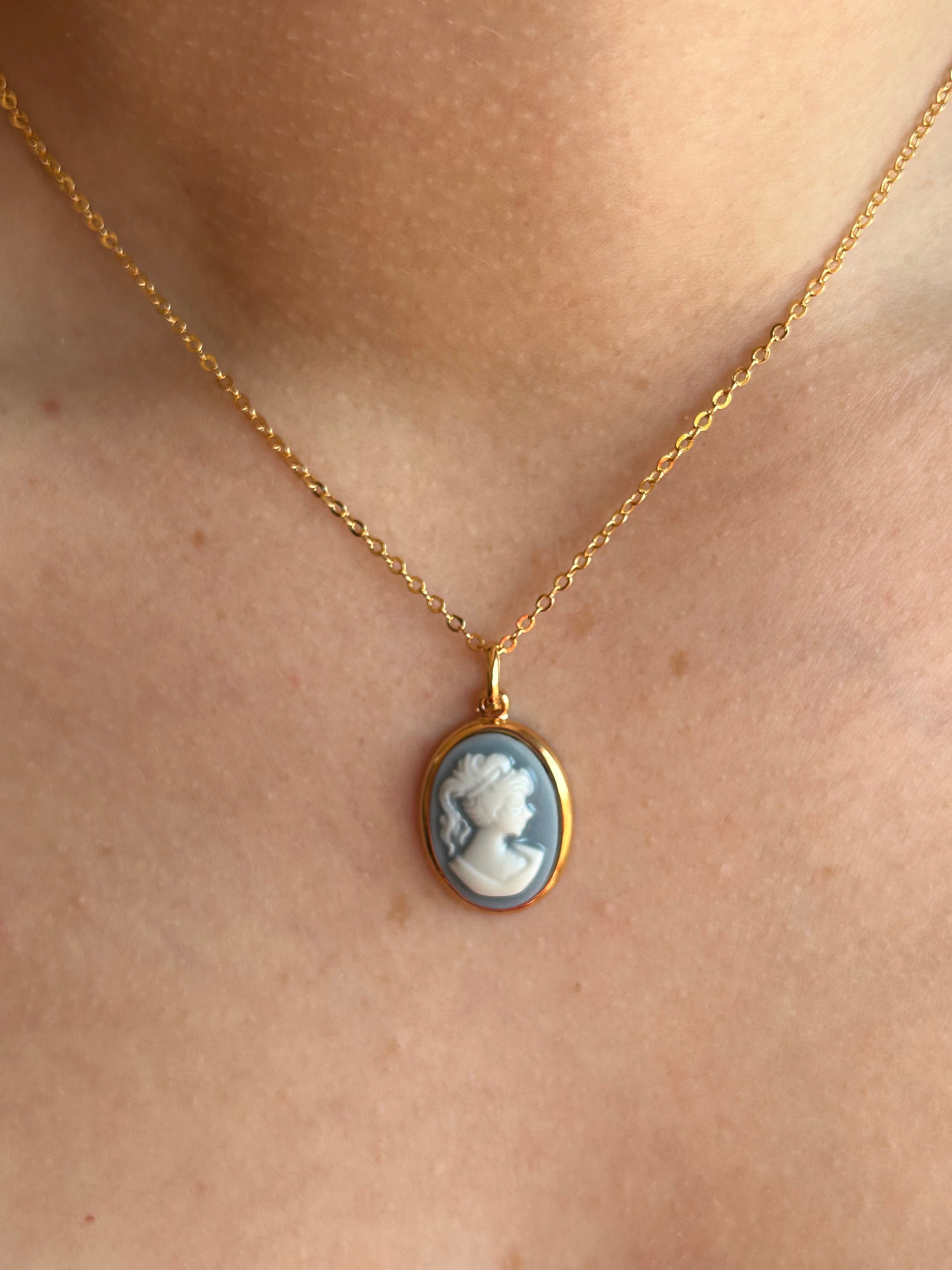 ✨Magnificent blue cameo necklace in gold plate, composed of an adjustable chain with an oval cameo pendant, rare and refined, very good quality, made in France, 10 year guarantee.