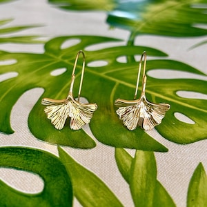 Gold or silver colored gingko biloba leaf earrings, original and elegant, very good quality, floral style, a gift idea for a woman's birthday, the gift box is offered, shipping will be fast