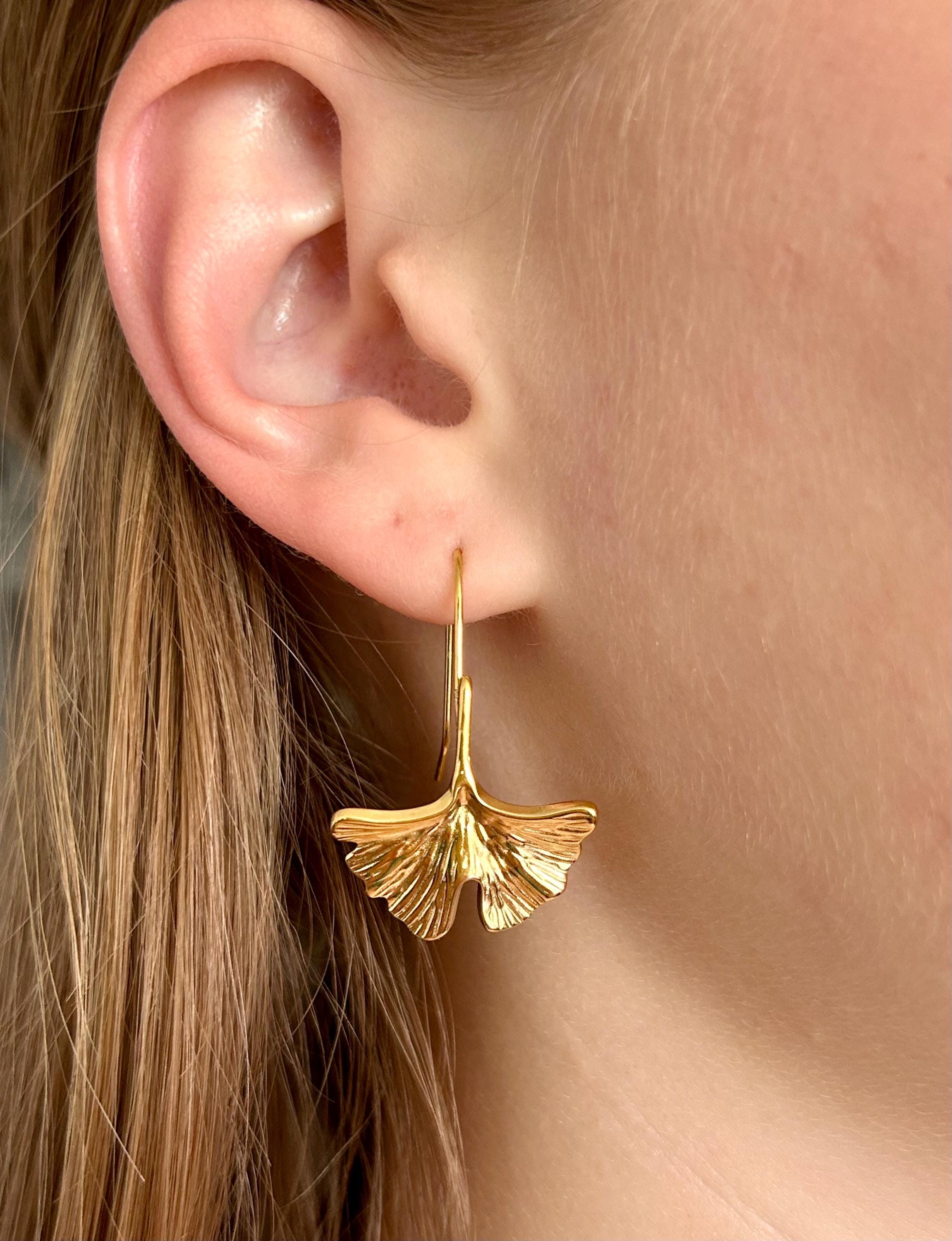 Earrings made from a gingko biloba leaf Made of stainless steel, anti-allergy and resistant We make our jewelry from stainless steel for its strength, shine, and resistance to oxidation so that your jewelry will last through time with you.