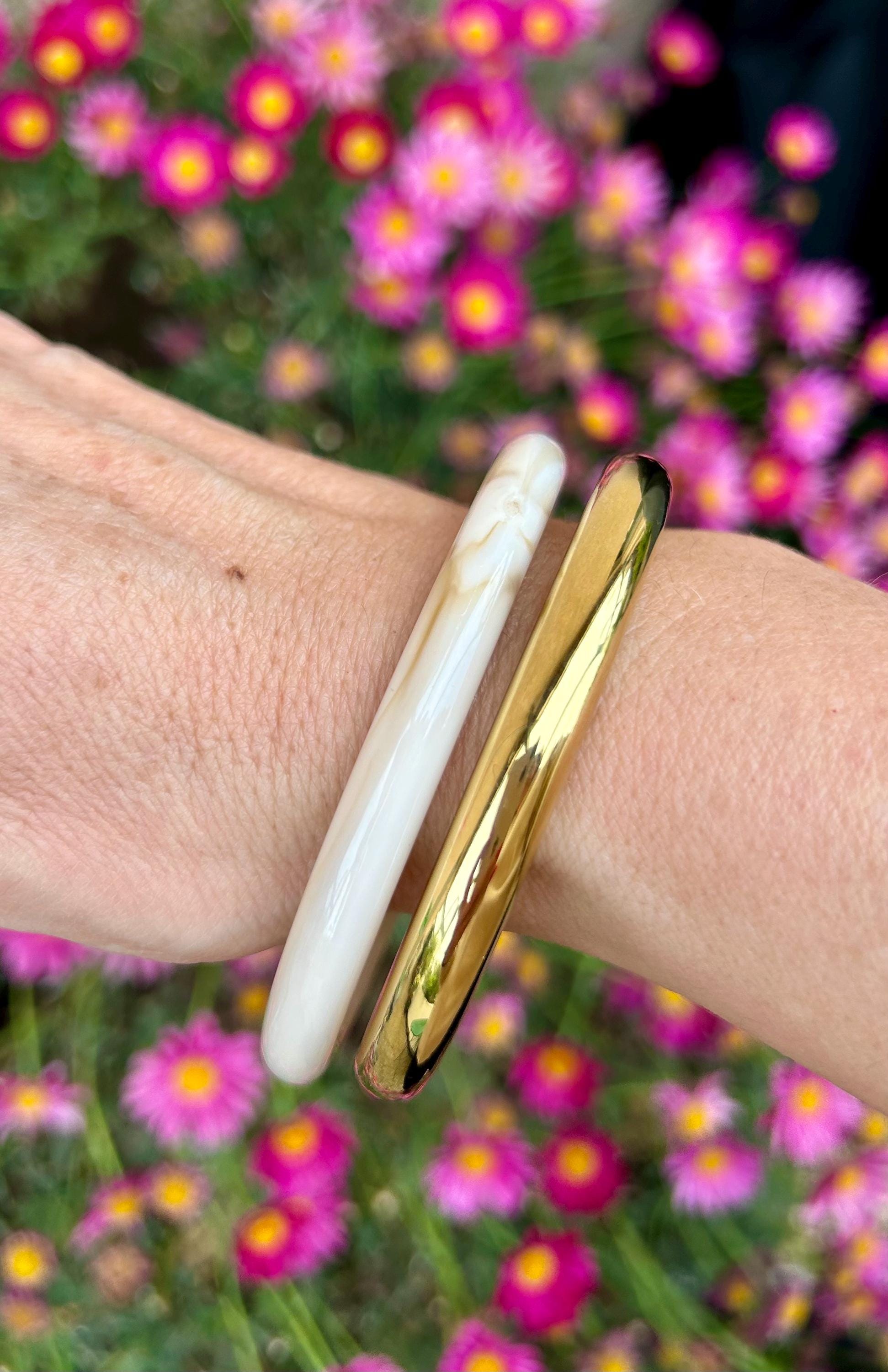 -> Our bangles are made of stainless steel, anti-allergy, water resistant, do not rust, do not change color. You can wear them daily, in the shower, hand washing, etc.