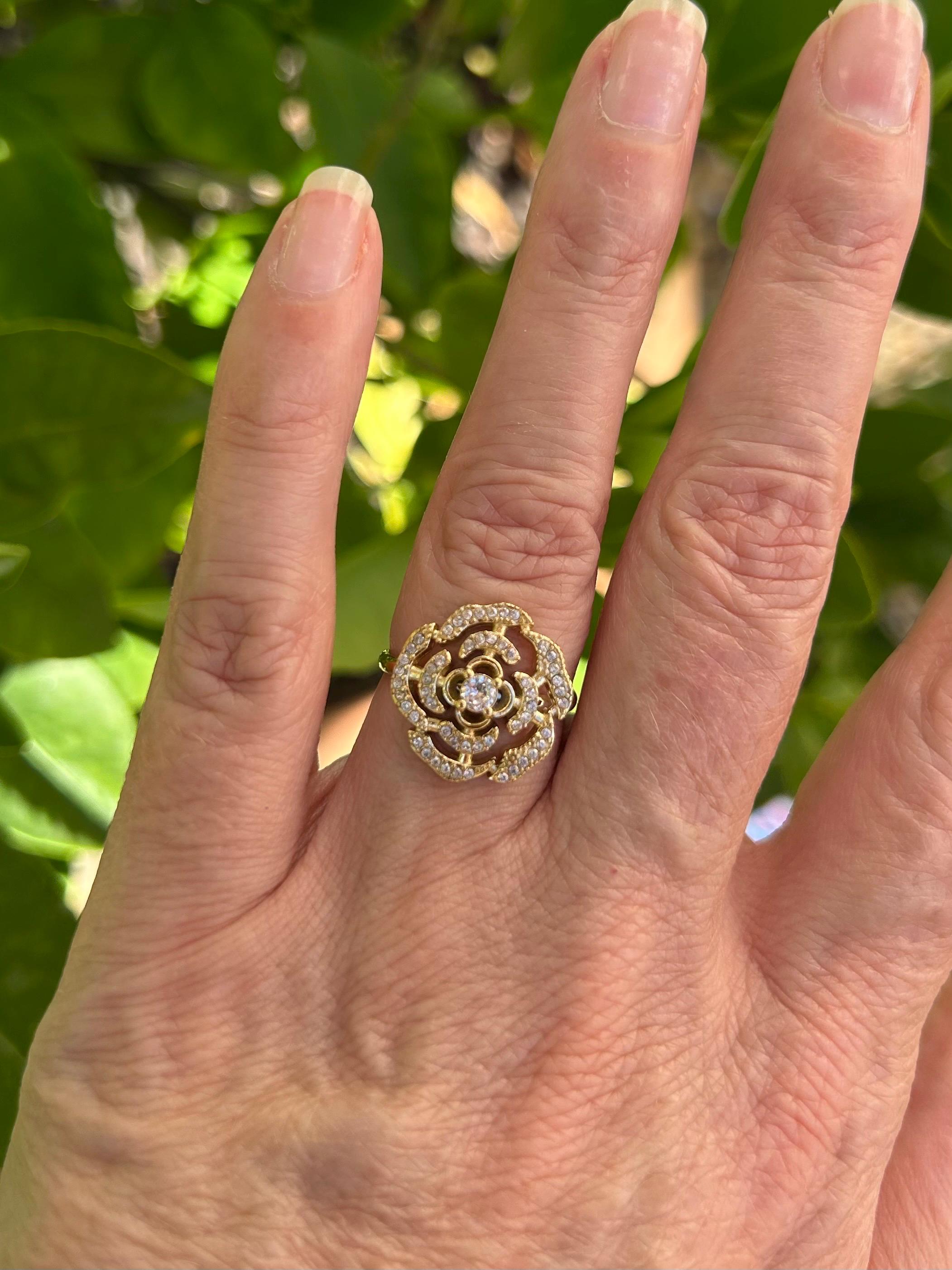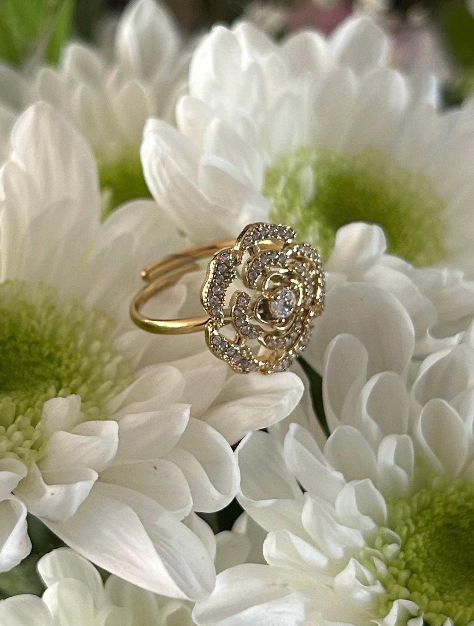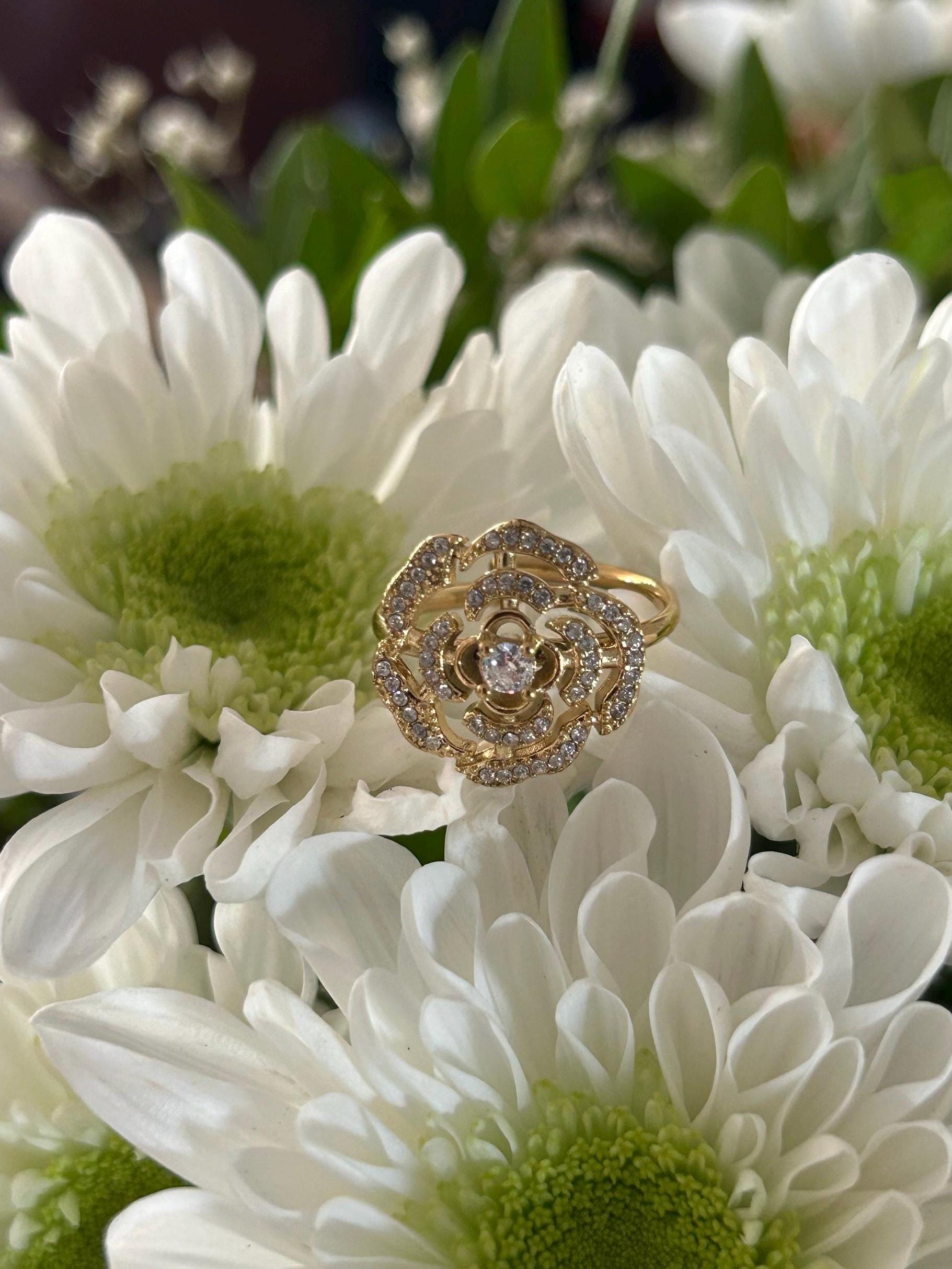 Magnificent silver flower ring with sparkling diamonds, French jewelry, silver color, elegant and refined in an antique style, floral motif, a perfect gift idea for women for a birthday, Mother's Day, or simply to treat yourself