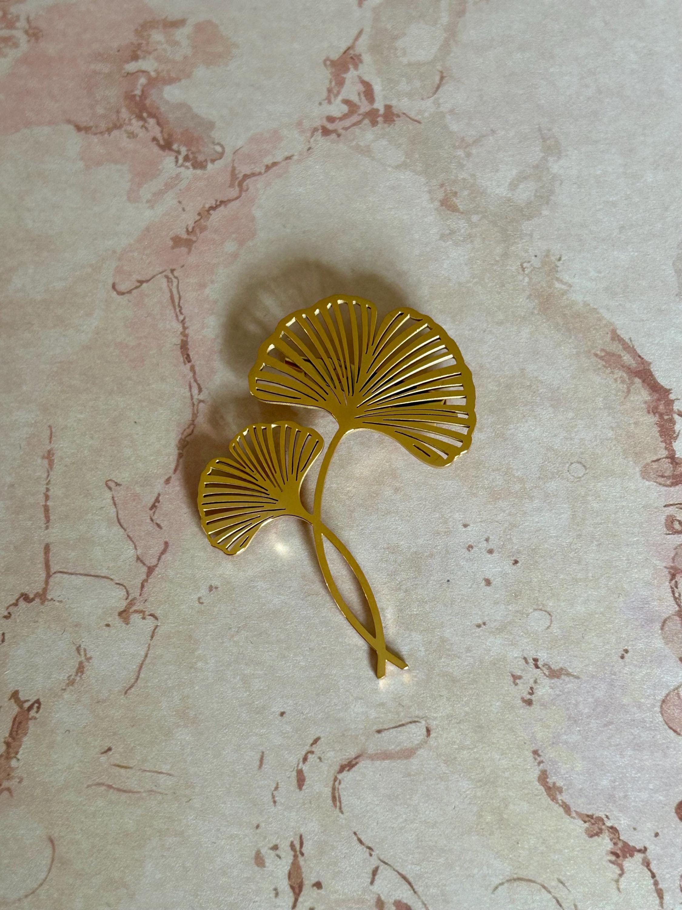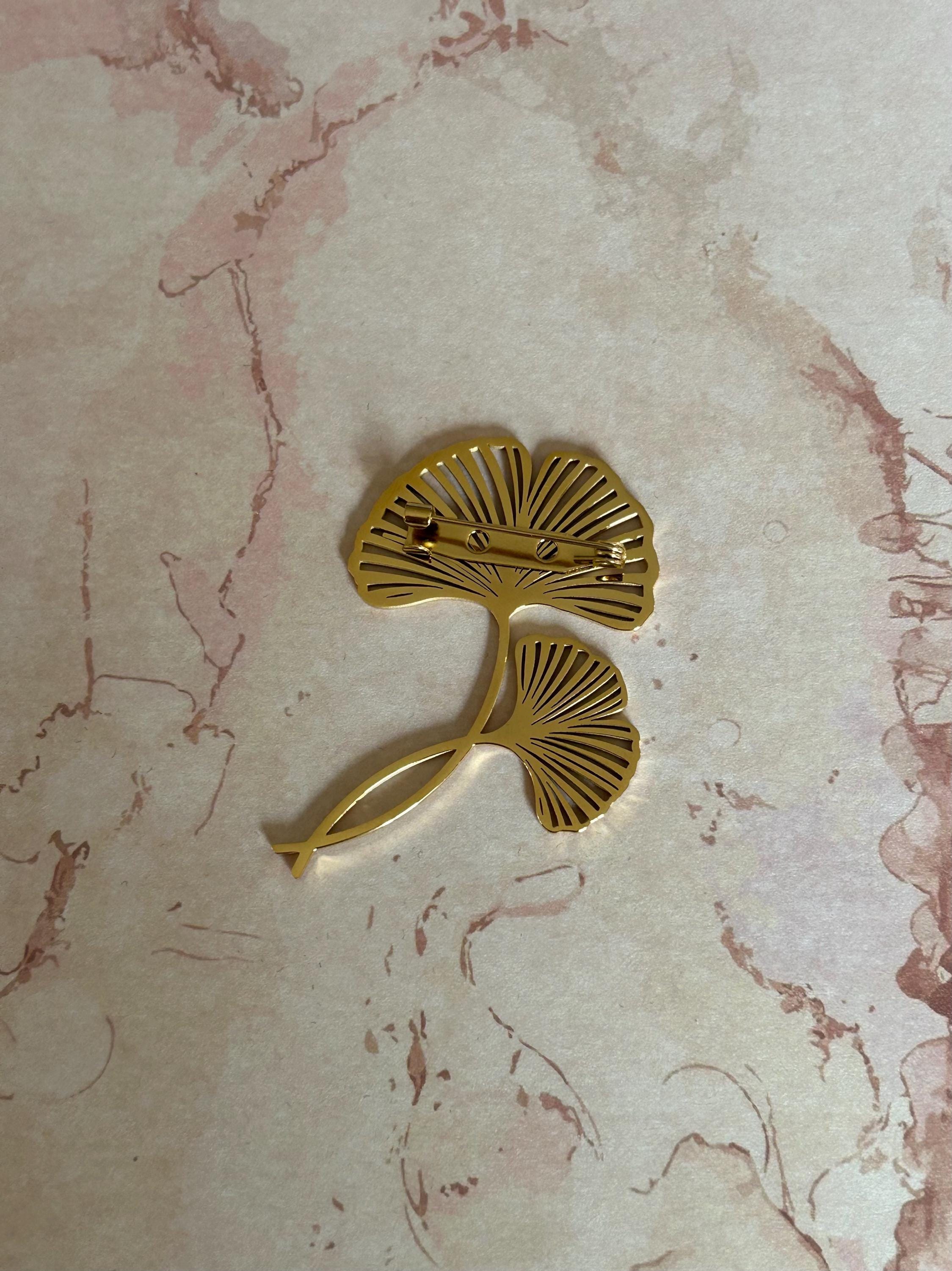 Pretty refined and elegant golden brooch with a gingko biloba leaf, Art Nouveau style, a beautiful gift idea for a woman for a birthday or for Christmas, the gift box is included and offered, as well as a blue pouch