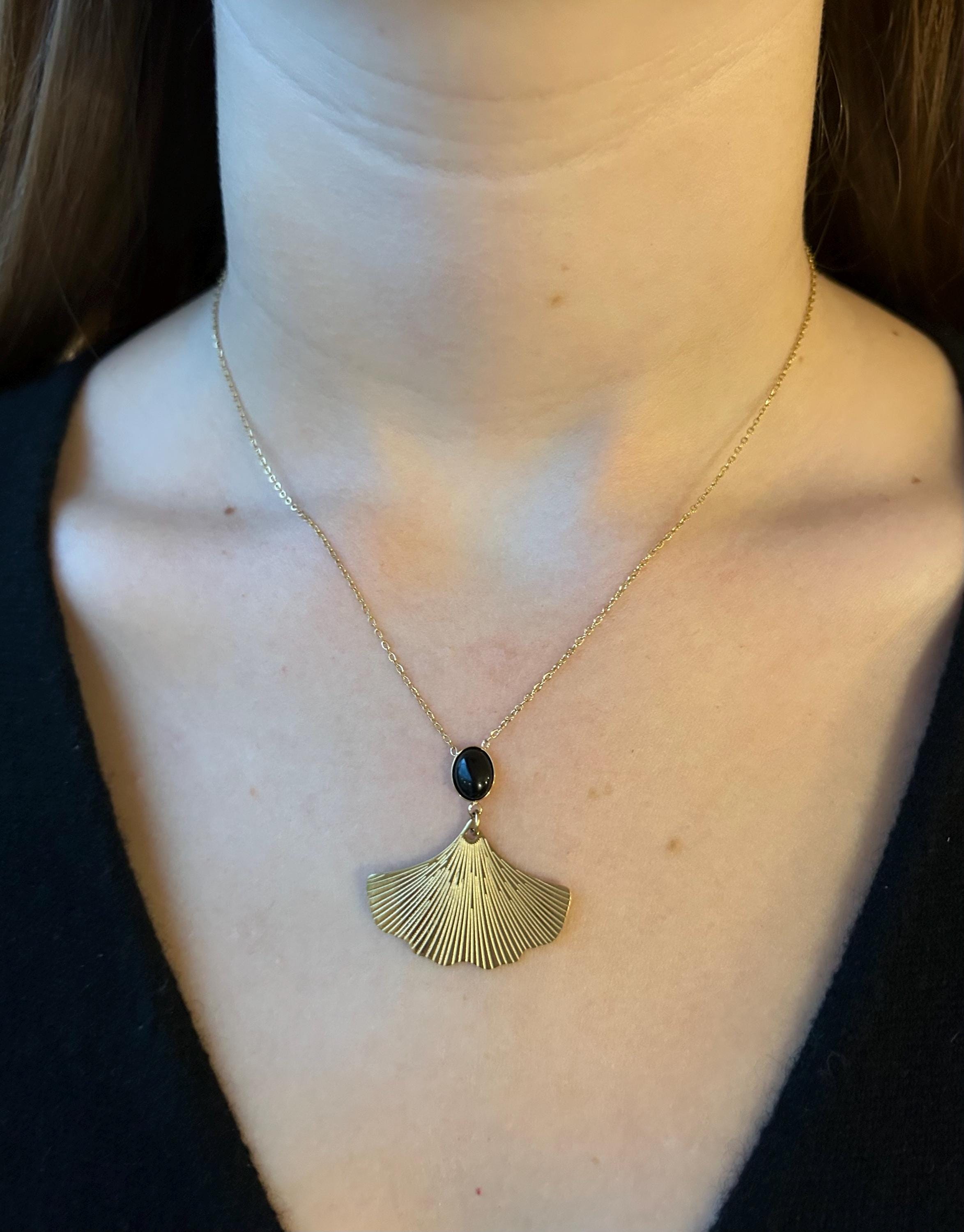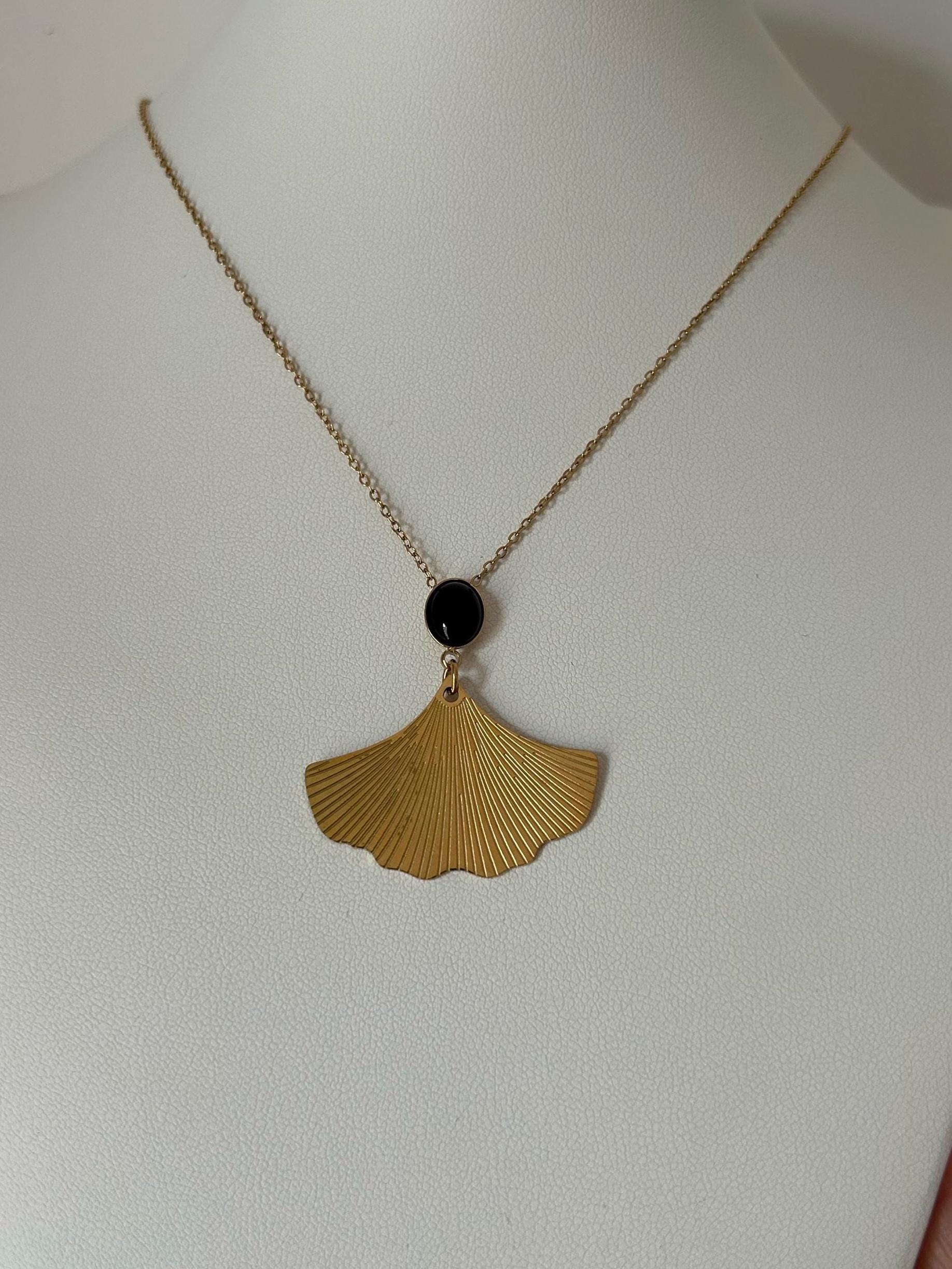 Ce joli collier fin doré et noir avec une feuille de ginkgo biloba surmontée d’une jolie pierre noire naturelle ovale est un très beau cadeau pour Noël ou pour une anniversaire. Ce beau collier est une nouveauté de notre bijouterie, il rejoint nos collections Gingko Biloba avec ses 2 versions en noir et en vert, 2 jolies pierres naturelles ovales.