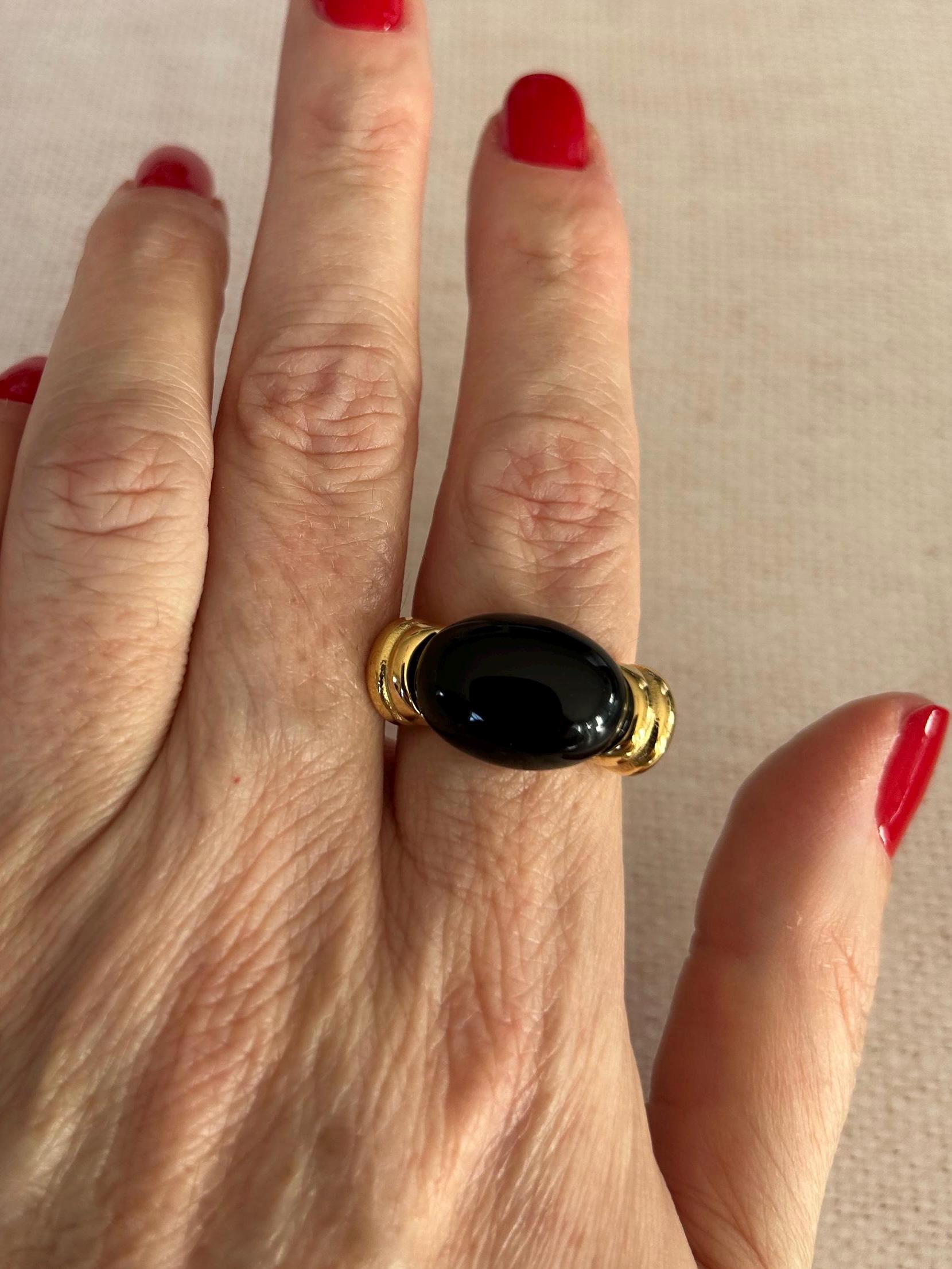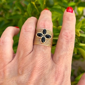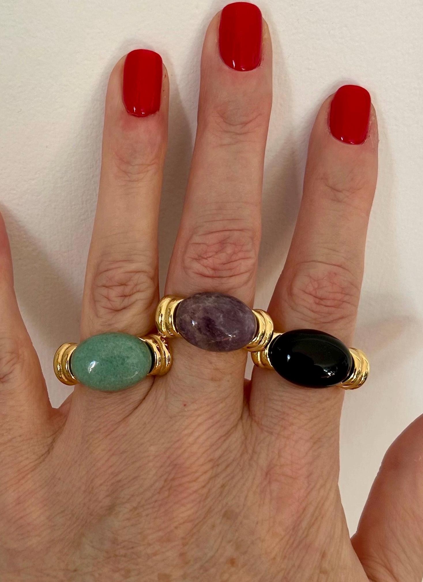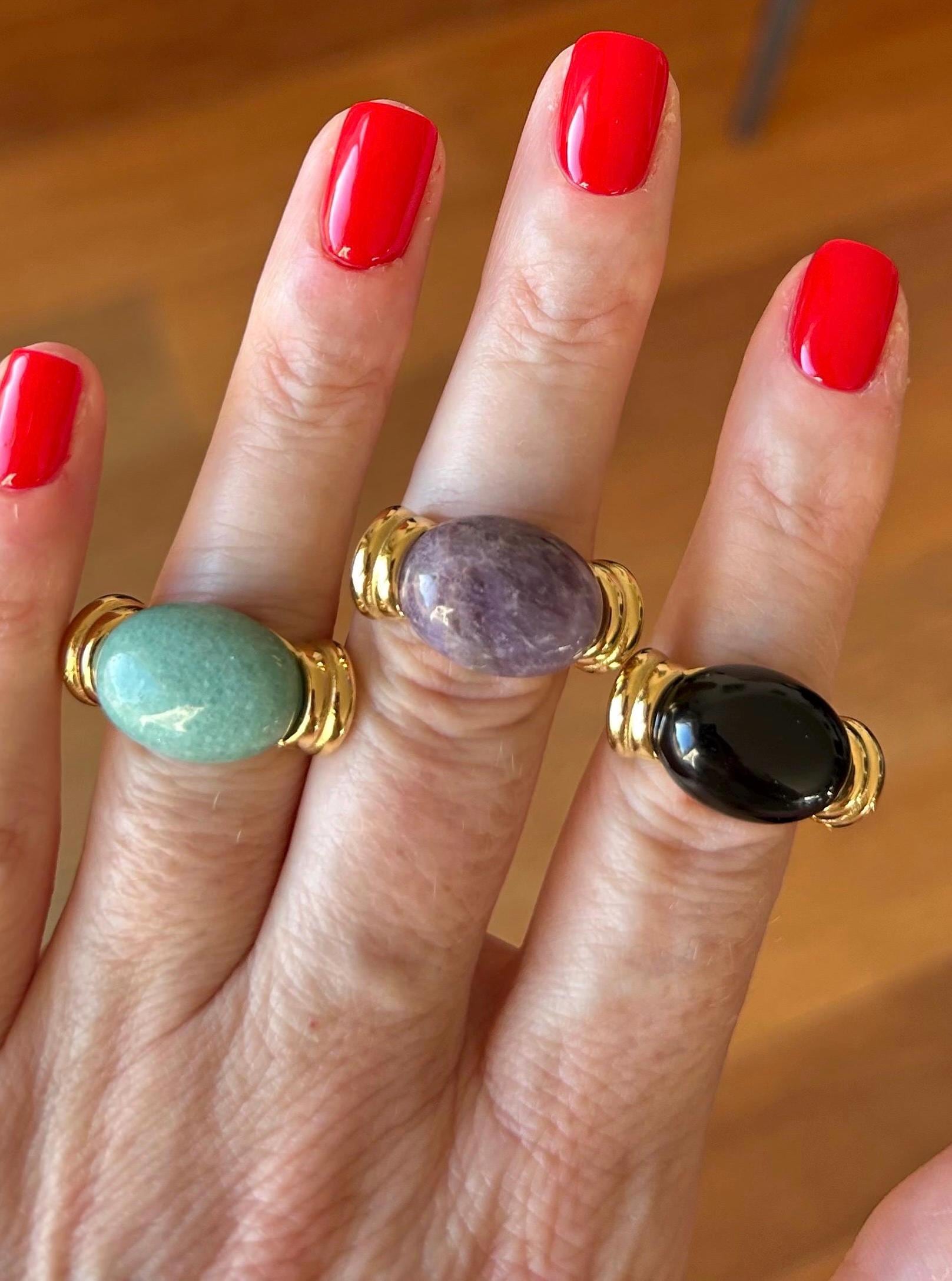 Magnificent Art Deco style gold ring with an oval natural stone in green, purple, black, and pink. High-quality adjustable ring. Fast shipping within 2-3 days in France.
